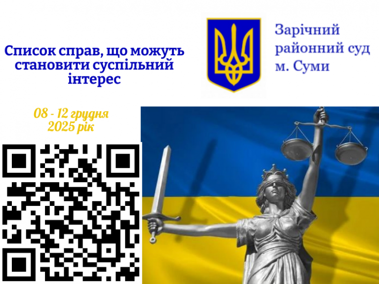 08.12.2025 на 15 год 00 хв кримінальне провадження № 591/3108/25 справа стосовно громадянина С., обвинуваченого в державній зраді (ч. 2 ст. 111 КК України). Колегіальний розгляд: головуючий суддя Клімашевська І.В., судді Сибільов О.В., Сидоренко А.П.