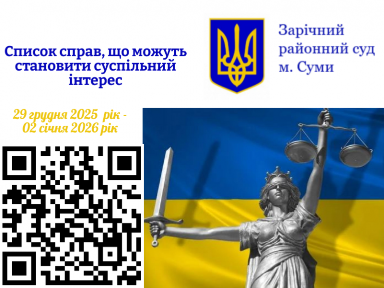 30.12.2025 на 15 год 00 хв кримінальне провадження № 591/1700/24 за обвинуваченням двох чоловіків у пособництві державі-агресору та у порушенні порядку здійснення міжнародних передач товарів, що підлягають державному експортному контролю (ч. 2 ст. 28, ч. 1 ст. 111-2 та ч. 2 ст. 28, ч. 1 ст. 333 КК України), головуючий суддя Ковтун О.М.