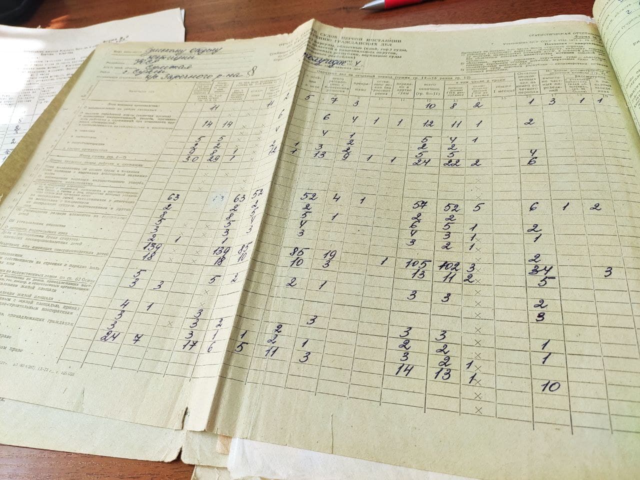 Та й самі звіти виглядали зовсім по іншому. Зараз усі дані по справах працівниками апарату суду заносяться до програми, в якій потім автоматично будуються усі звіти. Вони складаються із декількох розділів та багатьох рядків і колонок. А раніше статистичний звіт суду – це аркуш паперу формату А-3, куди вручну вносилися дані.