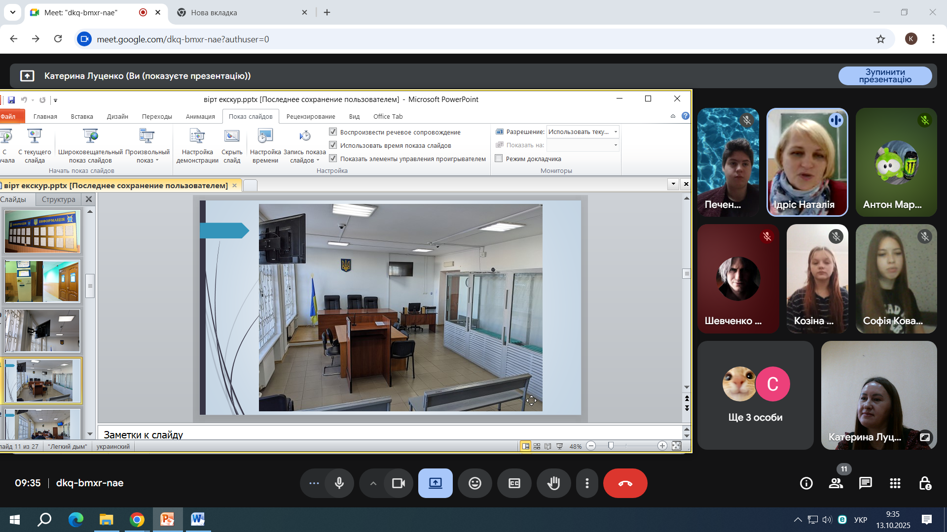 Учні мали змогу віртуально відвідати зали судових засідань, службові кабінети та архів суду. На слайдах було продемонстровано розташування учасників судового процесу в залі засідань, а також місце, де перебуває обвинувачений або підозрюваний у разі обрання запобіжного заходу у вигляді тримання під вартою.
