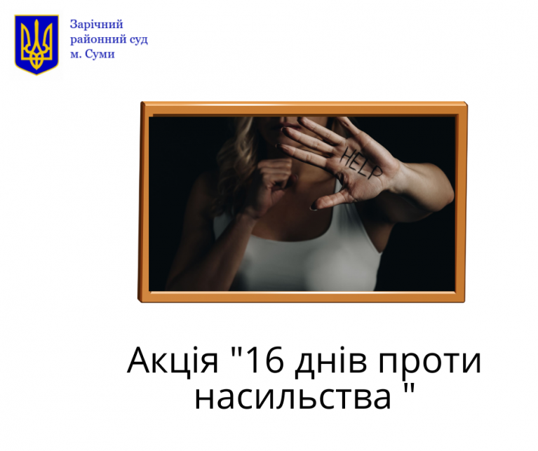 Акція «16 днів проти насильства» проводиться в усьому світі з метою підвищення обізнаності щодо проблем насильства, формування толерантного ставлення до постраждалих та пропаганди безпечного і правосвідомого суспільства.